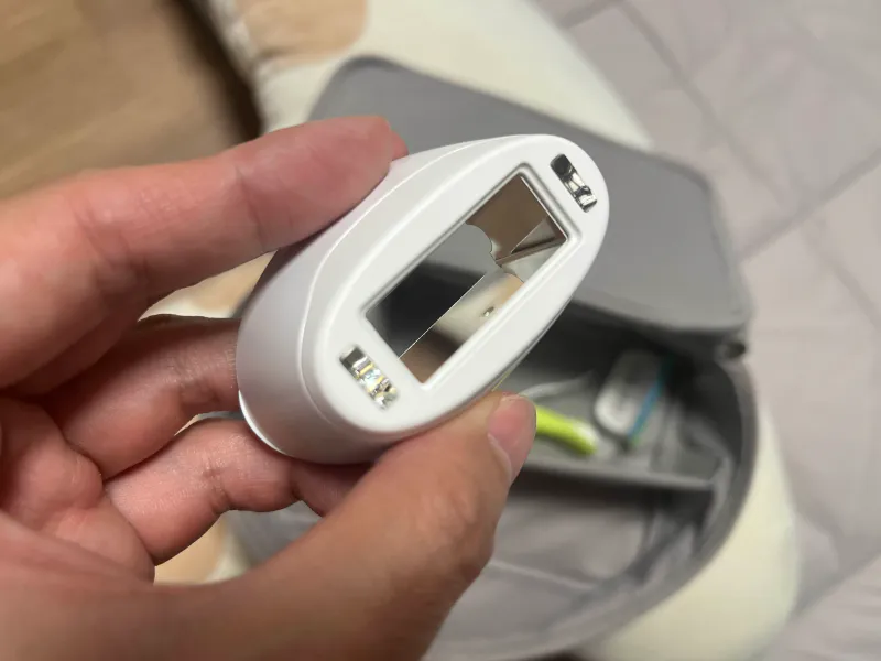 조사창을 깨끗하게 유지하려면 조사창 끝을 눌러 거울 부분을 분리한 후 물로 씻거나 티슈로 닦아주면 됩니다. 이렇게 하면 레이저의 반사율이 높아져 제모 효과가 더욱 좋아집니다