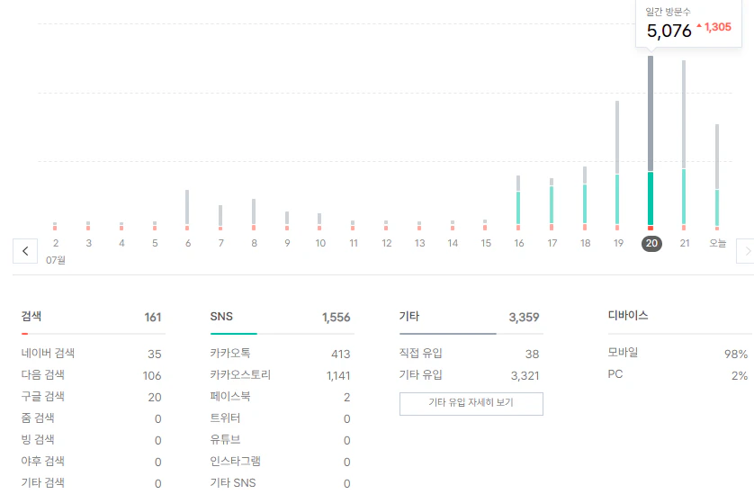 7월 16일부터 블로그 방문자 수가 기하급수적으로 증가하기 시작했습니다.