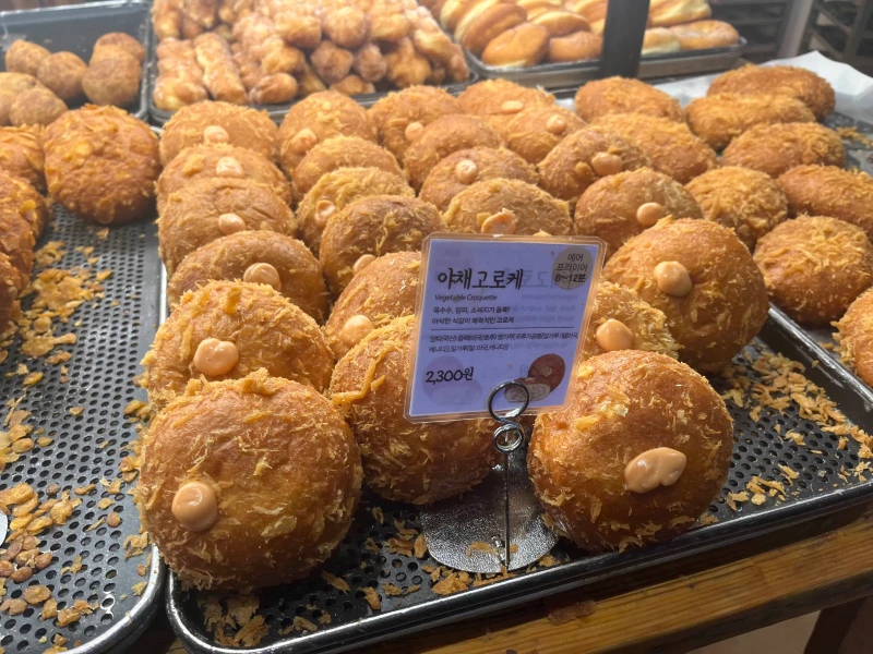 - 야채고로케: 다양한 야채들이 가득 들어간 고로케로, 바삭한 튀김옷 속에 촉촉한 야채들이 가득합니다. 고소하고 바삭한 겉과 풍부한 야채의 맛이 잘 어우러져 건강한 맛을 제공합니다. 특히 신선한 야채의 풍미를 그대로 느낄 수 있습니다. 집에 가져와서도 에어프라이어에 조금 돌려서 먹으면 더욱 맛있어요.