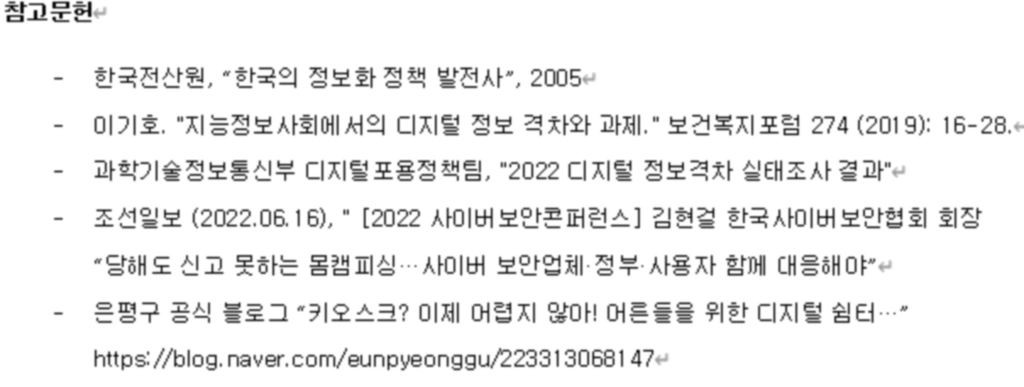 작성에 어려움이 있다면, 목차나 참고문헌정도 참고해보세요.