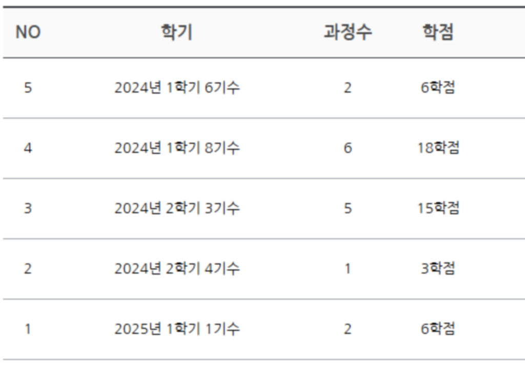 저는 총 2과목 → 6과목 → 5과목 → 1과목 → 2과목 순서로 수강했는데, 솔직히 말하면 개인적으로는 5~6과목씩 한 번에 듣는 건 추천하지 않습니다. 왜냐하면 정말 지금 내가 뭘 듣고 있는지 헷갈리거든요
