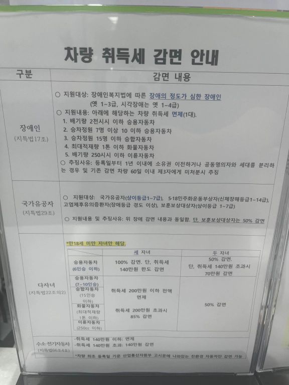 처음 해보는 차량등록이었지만, 생각보다 어렵지 않았다. 준비물만 제대로 챙기고, 취득세 감면 대상이라면 본인이 적극적으로 확인하는 게 중요하다.