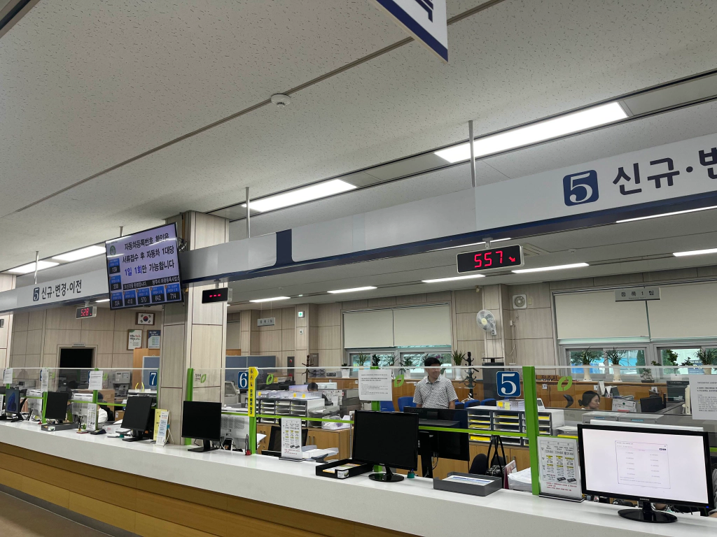 번호를 선택하고 나니 자동차등록증을 건네주시면서 "번호판교부처에서 번호판 받아가시면 됩니다"라고 안내해주셨다.