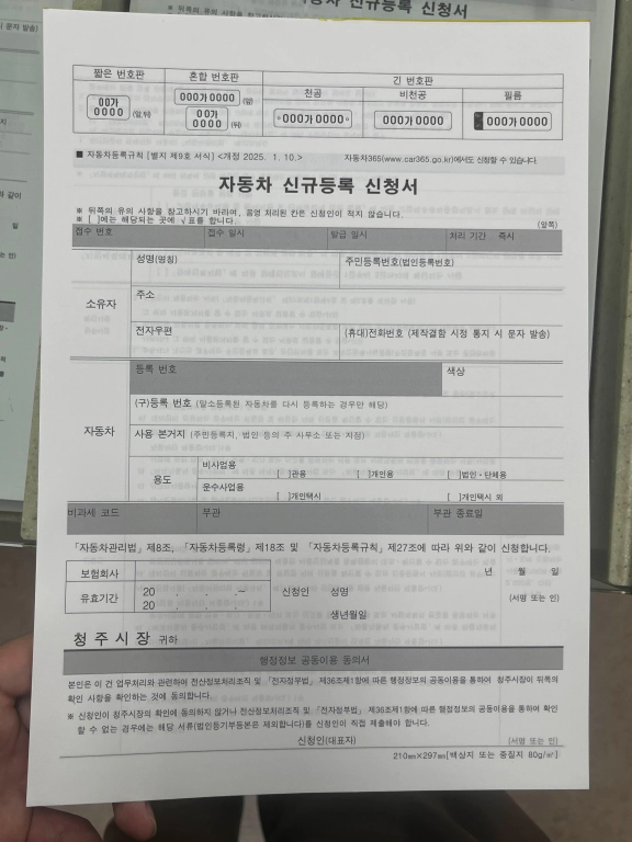 신차를 출고하고 나면 피할 수 없는 관문이 하나 있다. 바로 차량등록이다. 처음엔 복잡할 것 같았지만, 직접 해보니 생각보다 어렵지 않았다. 청주시 차량등록사업소에서 신차등록부터 번호판 장착까지 모든 과정을 직접 경험했던 후기를 남겨본다.