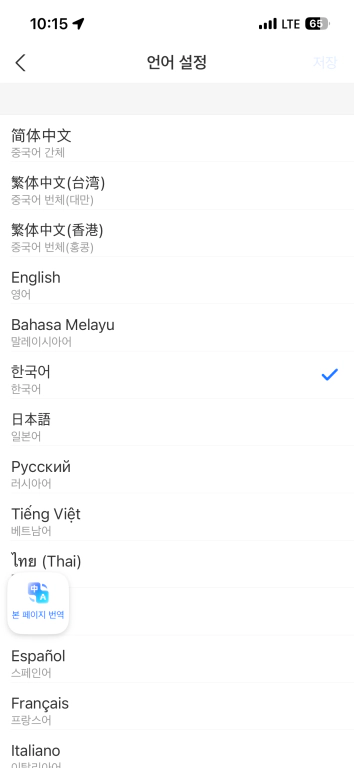 한국어뿐만 아니라 일본어, 태국어 등 다양한 언어 옵션이 생기고, 한국어를 선택하자 메뉴와 설명이 전부 한글로 바뀌었다. 그리고 '본 페이지 번역' 기능이 중국과 한국어가 오가면서 표현되어 제대로 된 알리페이를 쓸 준비가 된 느낌이었다.