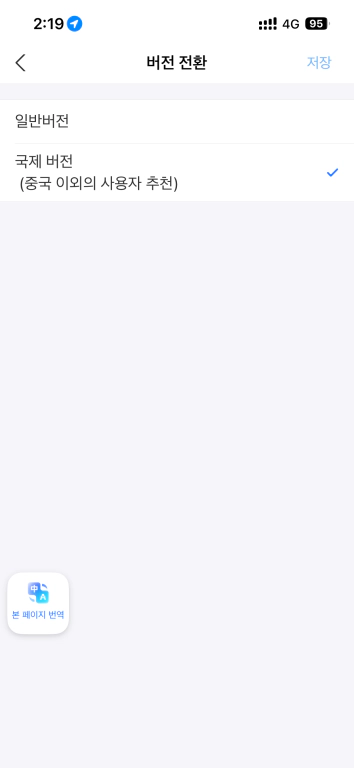 여기서부터가 이 글의 핵심이다. 마이페이지 > 설정 > 버전전환 (Switch Version) 경로로 들어가서 국제버전으로 바꿔주면 된다. 버튼을 누르면 앱이 잠시 재시작되면서 파란색 배경의 글로벌 버전으로 전환됐다. 화면 구성도 훨씬 깔끔해지고 직관적으로 바뀌었다.